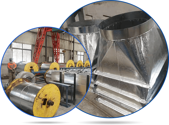 襄陽德達機電工程有限公司是襄陽暖通行業中的誠信建設企業。擁有先進的超五線風管生產線,全自動法蘭生產線,是風管加工行業設備齊全的廠家??梢陨a0.5厚-1.5厚的鍍鋅風管,同時還可以生產不銹鋼風管和角鐵法蘭,不銹鋼法蘭等。 經營范圍:通風管道,各類風管加工,通風風道,排煙管道,鍍鋅風管,白鐵皮風管,白鐵皮加工,不銹鋼風管,螺旋風管,圓風管,矩形風管,共板法蘭風管,角鐵法蘭加工,廢氣風管,空調風管,空調新風管道,凈化風管,送新風風管,排風管,除塵風管,除塵管道,廢氣管道,油霧管道,排煙分管,煙塵凈化風管等……